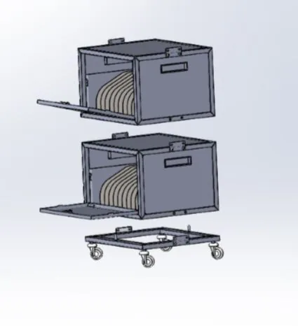 Бокс оснащен колесами (диаметр 50 мм, кол-во 4 шт) с тормозной системой для удобства и безопасности транспортировки.(доп опция)