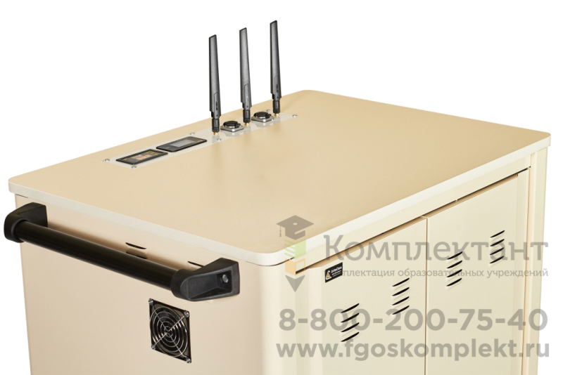 Мобильная тележка позволяет оптимально разместить 40 планшетов с диагональю экрана до 13 дюймов и один ноутбук с диагональю экрана до 17,3 дюймов. Группы розеток, элементы системы электропитания, блоки зарядных устройств, встроенная беспроводная система и дополнительное оборудование - размещаются техническом отсеке мобильной тележки.